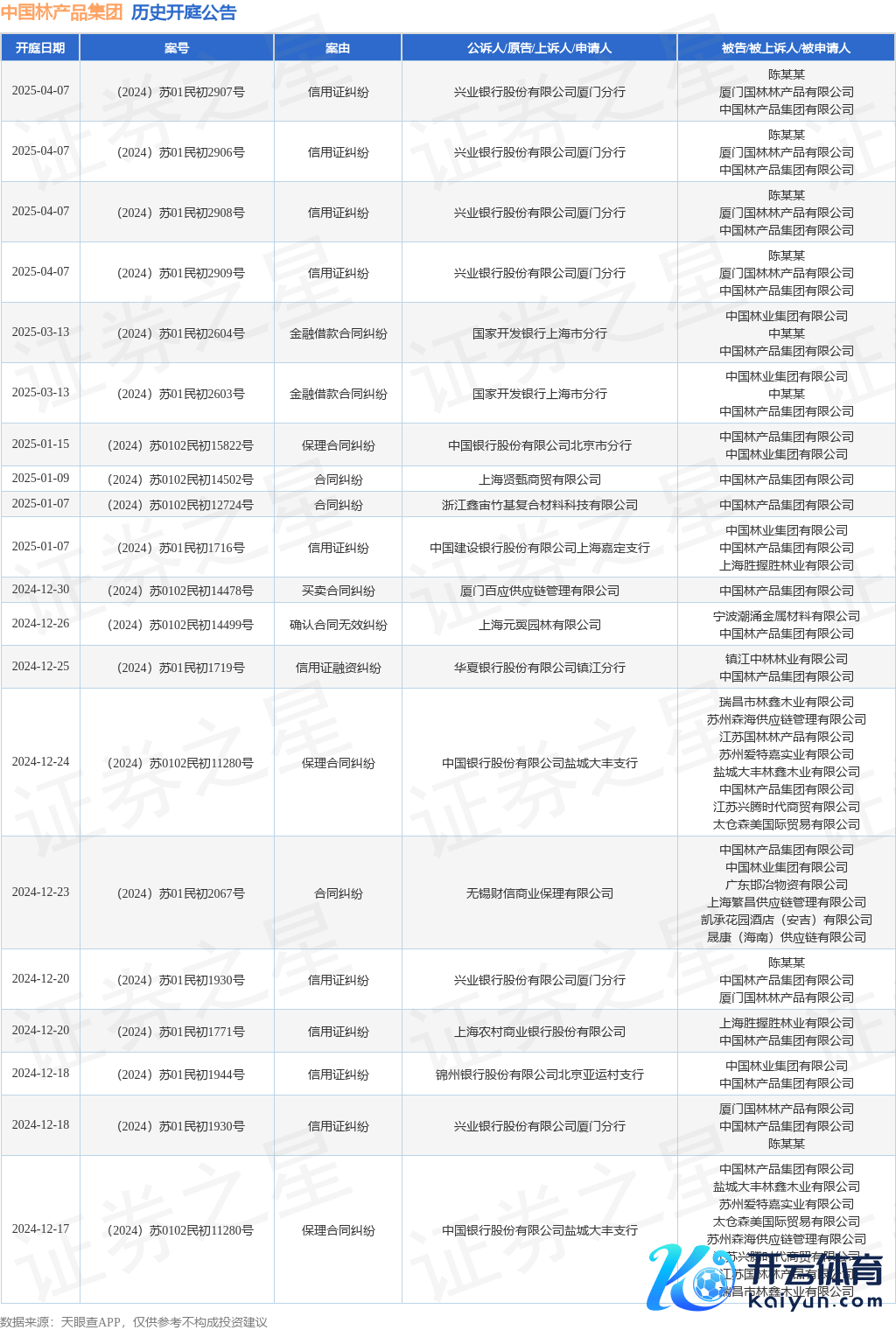 本站音信,左证天眼查APP披露,近日公布了一则中国林居品集团有限公司算作被告/被上诉东说念主的开庭公告,详备本色如下: