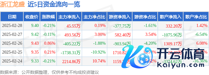 本站音问,适度2025年2月28日收盘,浙江龙盛(600352)报收于9.4元,下落0.21%,换手率0.76%,成交量24.71万手,成交额2.34亿元。