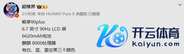 【CNMO科技音讯】近日,稀有码博主曝光了华为行将推出的中端新机“畅享90 Plus”的中枢规格参数。凭证曝光信息,该机将主打大屏与长续航体验。