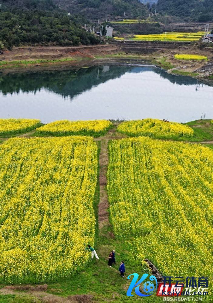 在水库退水后的滩涂上,当地农民以农田为纸,以耕格调气为笔,将油菜花的金黄与新叶的翠绿化作神采。通顺的线条如挥洒自如,斑斓的色块在地面上鼎力流淌。这幅在地面上鼎力流淌的山水画卷,让齐市东说念主的灵魂在此容身,更让我丹心惊奇:最高等的艺术家,底本一直齐在这深山境界之间。
