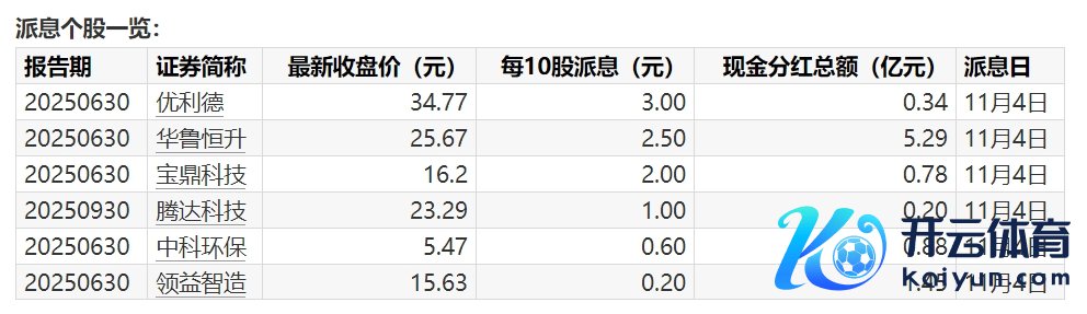 A股分成派息转增一览(11月3日):6股当天股权登记A股分成派息转增一览(11月3日):6股当天股权登记